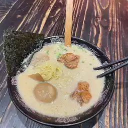 I had a delicious pork bone fried chicken ramen for only 32¥! (Cheap in comparison to other places)