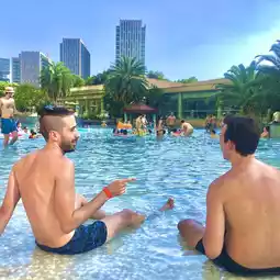 A beach with sand and water in Pudong. Who would of thought. Check out this pool with a couple of friends.
