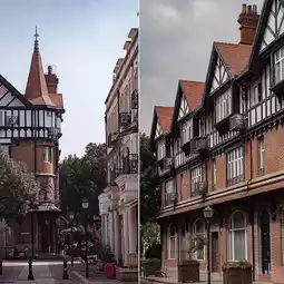 A very mature English-style town with various architectural styles and convenient eating and drinking