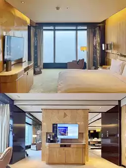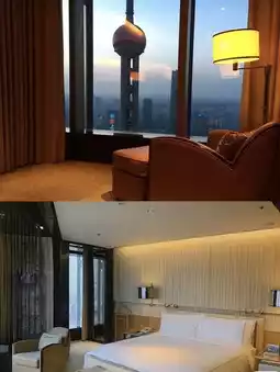 The room is on the 49th floor, with the Oriental Pearl and Huangpu River view room is very beautiful when you open the curtains, the bustling Shanghai. The city scenery is unforgettable. The setup is a bit dated,