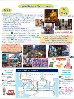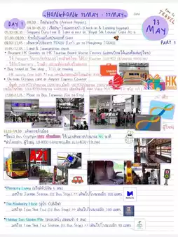 In May, we traveled to Hong Kong with our gang of friends, so I'd like to share our full travel plan with you all. In case anyone goes to Hong Kong and is too lazy to think of a plan, lol. Just save ours and travel with us. We went for 5 days and 4 nights, walking a lot 🤣. The most crowded part was that it rained for 3 days 🥲 Let me tell you in advance that there were 12 of us, 10 adults and 2 children. There are MTR prices for both prices. *The underlined colors at the stations are the colors of the train routes.* Day 1 We traveled with Thai Airways. We chose the morning flight because we would arrive in Hong Kong at around noon (the timing was perfect). To get to Hong Kong, Our gang passed through immigration easily without being asked a single question. LOL. After passing through immigration, we went to receive a Hong Kong Goodies Voucher at the tourist service point for $100 (I recommend registering from Thailand first). Then we rented Octopus cards. It costs $200 for adults and $100 for children. Each person has a $50 deposit, but you can get it back on the return flight. As for adding money to the card, it's easy; you can do it at 7/11 or at any MTR station. It's very convenient. Then we traveled into the city. There were a lot of people in our gang, so we chose to take bus A21 into the city instead. We stayed around Jordan and Tsim Sha Tsui. And since there were a lot of us, there were a lot of problems. LOL. We slept separately at 3 hotels, but they were in the same area. We didn't walk far apart and we successfully traveled according to the plan for the first day even though it rained when we arrived. 555 🤣🥹Day 2 Today, the rain was heavier than every other day. I checked the weather forecast and it was 100% rain in every area. It was so refreshing. 🥲🥹 But because we had already planned that on the second day, we would go to pray. Yes, our gang fought and went even though it was raining. 555' (Note: But there will be 2 of our friends and 2 children who couldn't go. The rain was afraid that the children would get sick, so we let them walk and wait.) As for today, it's according to our plan. But we will cancel going to the 3rd temple, Chi Lin Nunnery Temple. Because at first, we planned to walk and take pictures at the park. But the rain came so hard that we had to cancel the 3rd temple. But in the evening, the plan to go for a walk in Mong Kok has been canceled. We really couldn't handle the rain. So we went to eat burgers at K11 mall instead and had a beer at Temple Night Market near our accommodation 555☺️ The mission of the first 2 days is considered complete even though it rained heavily.