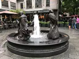 It has a nice atmosphere with cobblestones and a fountain. It's like Aoyama or Omotesando in Japan.