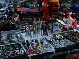 There are shops selling handmade goods, cosmetics, and shaved ice.