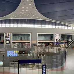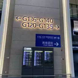 Check-in is done at the existing terminal, and gate numbers with H (1st) or G (2nd) indicate satellites.