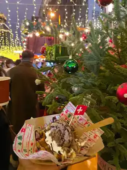 Food & Restaurants - You definitely feel like you’re anywhere but China. There aren’t only German food,but food from all over the globe made by natives themselves. I mostly enjoyed the Swiss chocolate ice cream 🍨 on my warm waffle🧇 . I also got to learn more about Arabic food and had a beef schwarma, which I had not had in years. There were more than enough stalls with good and warm mulled wine. The Nutella 🫔🍫pancakes queue was the longest, consider yourself lucky if you get hold of that gem.