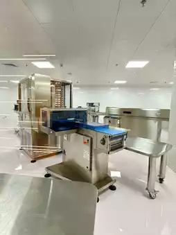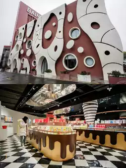 Bainuo Chocolate is our own Chinese brand, affiliated to Shanghai Bainuo Food Co., Ltd., established in 1998, headquartered in our Shanghai. Scan the code next to the sales department on the first floor to enter the Bainuo Museum. The very large wave-shaped LED screen on the second floor is quite shocking. It is composed of several projectors and plays an animated story about the Silk Road business trade and technology knowledge dissemination. The breads in the window reminded me of the various styles of bread displayed in the glass window opposite the Peace Hotel when I passed the Bund as a child. The smell of bread was irresistible The automated chocolate production machine demonstrates the importance of technological development