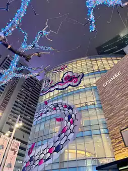 The dragon tail is on the outer wall of the mall, you can take a picture of the whole giant dragon from the front.