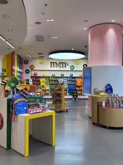 The store has two floors and sells various M&M store goods. It's a place where you can have fun just looking around because there are so many different products!