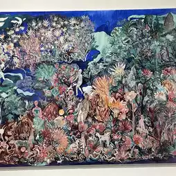One painting, one world; one flower, one paradise. The watercolor world carefully constructed by Borelli allows the viewer to wander among countless biological communities. It is enough to immerse people in it and lose themselves in this group of flowers with joy. Borelli poured his energy into the creation of a miniature painting: the picture is full of details and patterns, the painting method is meticulous and stylized, complex and varied; these "ecological reserves" are like breathing in a tight fabric, At the same time, it retains complete dynamism and transparency.