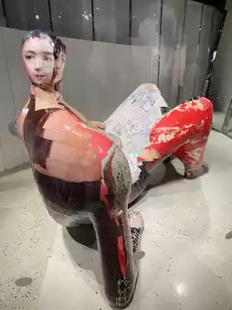 In addition to the croissant gym, there are several other installations that are also very interesting to see. The huge human face installation on the second floor has also been updated, so realistic that even the pores and age spots are clearly visible. The giant face is linked with braids in the middle and rotates, giving it a strong sense of technology.