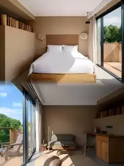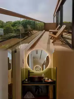 The guesthouse has 9 rooms, one room and one private bath, introducing high mountain spring water into the house, unloading fatigue in the bath, emptying thoughts, quietly enjoying peace, letting the misty heat sweep away fatigue, and integrating with nature. While maintaining the simple and original style in the room, all hardware facilities also use high-quality, high-standard selections to ensure the comfort of stay from every small detail.
