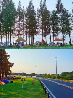Dianshan Lake Ring Road is really suitable for 🚗 self-driving travel, and also suitable for 🚴♀️ cycling. Many people camp here by the lake⛺️