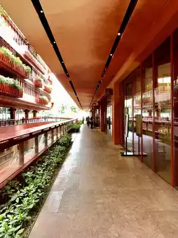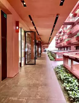 The design concept of the Henderson CIFI Landmark project is to continue the cultural foundation of Xintiandi, incorporating elements of light and nature, using the collision techniques of red and green, inside and outside, new and old, the inner street uses bold Danxia red, creating a huge collection-level art building, the panorama uses a canopy roof, making sunbathing during the day and stargazing at night a unique landscape, providing shelter for the street, introducing natural light, making the space more transparent and unique.
