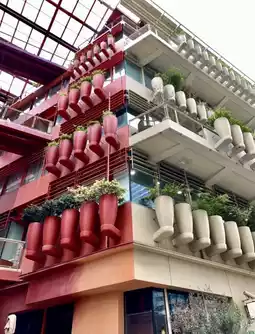 About 2,500 flower pots of vertical greening, constitute a rare green plant facade in Shanghai. With the change of the four seasons, the color of the building facade will also change.