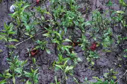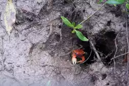 The small crabs in the Xisha Wetland area are actually called xiaoqiu, with the gray ones mostly in the water and the red ones preferring the soil of the wetland.