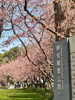 There is a large cherry blossom 🌸 forest in the center of Shanghai, which has already bloomed and looks beautiful when📸 photographed casually. Located in Jing'an District, the specific address is as follows: Gate 1, Jing'an Sculpture