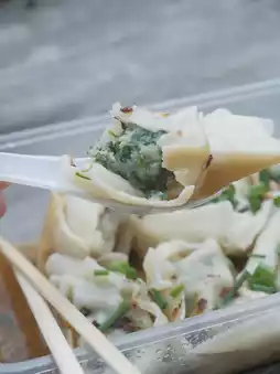The staff recommended the dry mixed eating method, which uses their homemade soy sauce with a hint of 🥜peanut butter aroma. It's not spicy at all, and the filling is shepherd's purse and pork, with a very even ratio. Quite good.