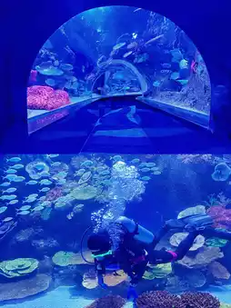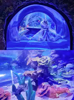 This is an aquarium that focuses on family themes, offering fish feeding interactions and educational activities. Even the underwater tunnel has a version for children (adults can't fit through the small tunnel entrance), making it truly unique!