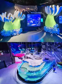 The 'Skysea Cloud-top Aquarium' is located on the 5th floor of the newly opened 'Haimeng Yifang' mall in Minhang, covering an area of about 6000 square meters and about 25 meters above the ground, featuring over a hundred species and more than ten thousand marine creatures. Popular attractions include the underwater tunnel, sardine tunnel, panoramic jellyfish theater, semi-open penguin island, sea lion theater, and the deep-sea exploration science education area.