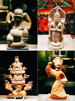 6⃣️ Eastern Han Dynasty·Drum-beating and Storytelling Figurine: Collected by Three Gorges Museum, made of clay pottery, the head is wrapped in a kerchief, the facial expression is comically exaggerated, the hands are raised, the left hand holds a drum, and the right hand is lifted, full of dynamism, with a strong folk atmosphere and local characteristics.