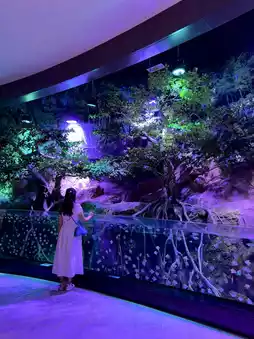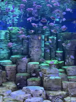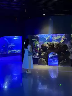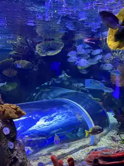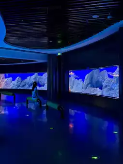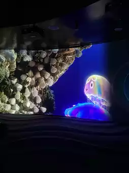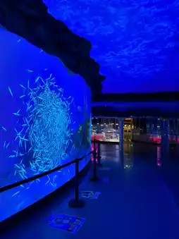 It has two floors, and although it's not as big as the other two, it has a complete variety of marine life: sharks, seals, penguins, schools of fish, jellyfish, etc. (However, there are no large creatures like orcas, belugas, or dolphins)
