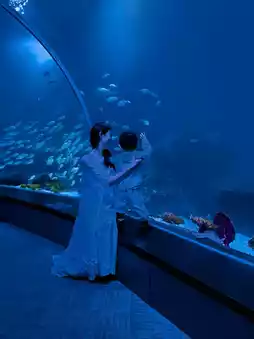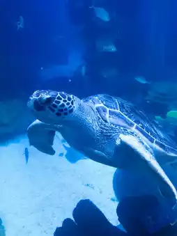 As soon as you enter the door, you will see a huge sea turtle, which is really super cute. There is an underwater tunnel next to it where you can see Manta rays. It is also a great place to take photos. 📷