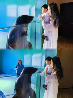 Saw an interesting sea lion show, the sea lions headed the ball, they seemed very obedient and docile. After the show, the staff asked if there were any viewers who wanted to take photos with the sea lions. Luckily, I took a photo with my baby 😄