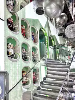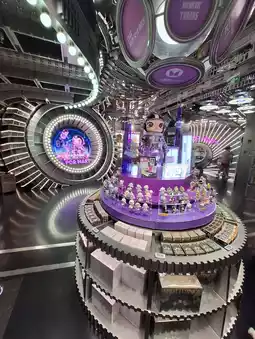 Pop Mart is a blind box doll shop with many branches around the world. The branch we went to today is the Nanjing Road branch in Shanghai, China. The shop is located at the intersection of the Bund, opposite the Gucci shop. The building is striking with a giant Molly doll, decorated with bright purple lights. When you enter, you will find various doll items that collectors should not miss. The shop has 2 floors. The first floor is decorated with colorful lights, divided into zones and types of dolls. The second floor is decorated in a space theme. Mostly Molly dolls