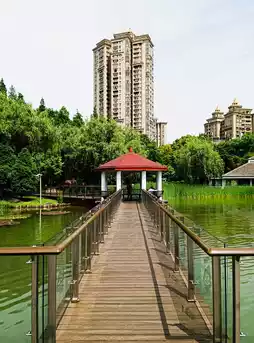 Xinhongqiao Central Garden is located at No. 97 Yili Road, Changning District, Shanghai, situated in the Shanghai Hongqiao Economic Development Zone, with three entrances and exits on Yili Road, Yan'an West Road, and Hongqiao Road. The garden covers an area of about 130,000 square meters, with a central lake area of 10,000 square meters, and officially opened in September 2000.