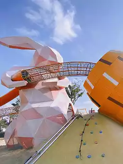 In fact, there are already 2️⃣Rabbit Nests in Shanghai. This one is located in Yuehu Sculpture Park in Sheshan, Songjiang, which is closer to the city. The other one, although larger in area, is located in Chuansha, which is further away from the city. In Shanghai Lavender Park. And when it comes to water play, Yuehu is even better. Not only does the park come with water play projects such as Happy Water Valley, Cloud Waterway, and Moon Boat, but there is also a beautiful water curtain bridge/water-friendly beach/in the Yuehu Sculpture Park. Water stage.