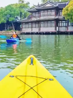 Traveling between naturally formed rivers, surrounded by ancient Chinese buildings, ancient trees and bridges, this water kayaking experience is so special!