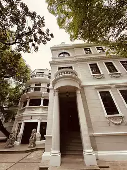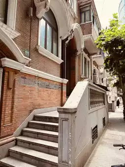 The road is narrow, so narrow that even on the sidewalk, two people meeting must turn sideways to pass each other. The dense plane trees cast deep shadows, walking under them is like entering the gates of a castle. On both sides of the street, lanes, alleys, and large courtyards with deep-set houses and Western-style apartments are mostly over a hundred years old.