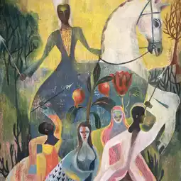 Olaf Hajek's "Parade" is by far my favorite at Magnolia Hall. The perfectly crafted illustrations, rich details and vivid colors create fascinating visual patterns, scenes and creative characters that make people want to look at them again and again.