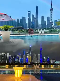 2. W Shanghai - The Bund - The pool with the best view of the Bund, where the beauty of the Pujiang River is right beside the pool, and the night light show is unforgettable.