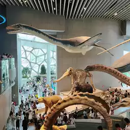 Today, I invite everyone to take an educational walk at the Shanghai Natural History Museum, a large museum showcasing the history of animals from ancient times. Not only will you gain a wealth of knowledge from the modern exhibits, but there are also videos and informative signs in both Chinese and English. The large exhibition halls are divided into multiple floors, categorized by different eras of animal species, making it a grand and impressive experience. There is also a small aquarium zone and a butterfly conservatory where children can have close encounters. Additionally, there are souvenir shops and food stalls.