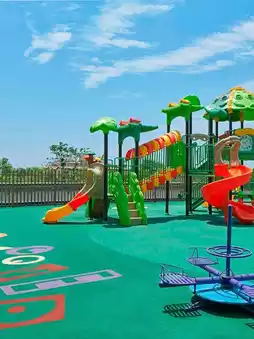 Ready to tire out the kiddos? The 300㎡ playground's got slides, swings, and all the fun, plus indoor and outdoor areas mean playtime come rain or shine! 🛝🧗 For the 'rents, there's a gym, pool, and even KTV for that secret pop star in you. 🏋️♀️🏊♀️🎤