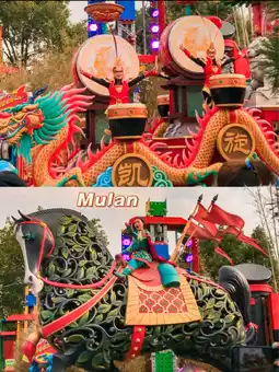 🪭 The Chinese themed unit with Mulan on a horse followed by people playing large drums.