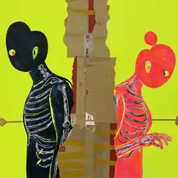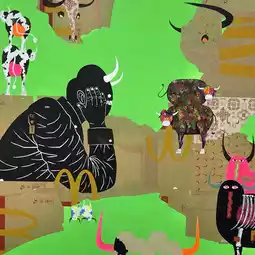 Under the artist's imaginative pen, Lao Wang with tattoos is not bound by rules at all, and everything is possible. In his world, he can infect all things and species at any time. All objects and life forms that have come into contact with him will have the iconic head shape or facial features of Lao Wang with Flower Arms, and will get along very well with him! Everyone who is infected becomes happier and more open. Everyone can shine in their own way and find the meaning of their existence.
