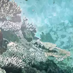Entering the Du Meng Hall, the highly realistic paintings make it feel like you are underwater with the artist, equipped with VR, admiring an underwater kingdom composed of corals, azure waters, fish, turtles, and sea anemones.
