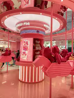 Fans of Lotso bears, come this way! 🙌🏻🥰 Today, we will take you on a tour of Miniso, a famous cute store with branches all over the world. But let me tell you, this branch is sooo sweet! This is MINISO PINK Shanghai branch! 💖