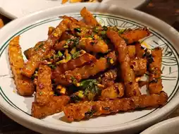 Yunhaixiao (云海肴) is a chain restaurant that can be found all over China. We visited the one in a shopping mall in Shanghai, China. We ordered various dishes, but the dish that suited my taste the most was a dish where Yunnan Pu'er tea leaves were stir-fried with fried tofu. The fragrant Pu'er tea scent came up and it was really fresh. The lotus roots stir-fried in Chinese seasoning were also a seasonal food, so they were very delicious.