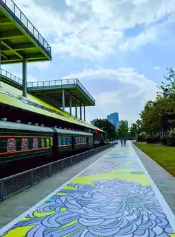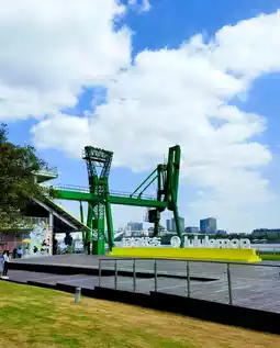 At Xuhui Riverside, you can feel the artistic atmosphere everywhere, whether it's the breeze or the whispering water. This charming land of Xuhui Riverside is writing a wonderful chapter for the National Day with its unique charm. It used to be a gathering area for factory docks, but now it has become a top leisure destination and cultural and artistic palace for people on National Day holidays in Shanghai.