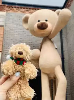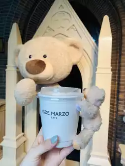 You can buy coffee at the flash mob site, and a bear will be given with the coffee. Take a photo with the coffee against the church, which is super stylish.
