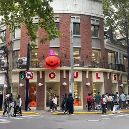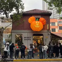 This period, the shops on both sides of the road are full of Halloween decorations.