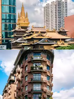 4⃣️ Jing'an Temple: After some exploration, I found the best photo spots are the pool at the hotel across the street for reflections and the Huashan Road overpass in front.