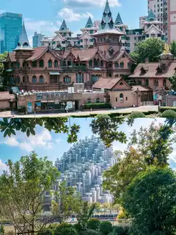 6⃣️ 1000 Trees: Nicknamed "Shanghai Babylon," it's said to have 1,000 trees on the roof. The photo spot is on the Suzhou River bank outside Building 46 of the Zhongyuan Liangwan City community across the street.