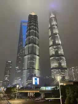 The buildings in the picture are Jin Mao Tower, Shanghai Tower, and Shanghai World Financial Center, which are considered the financial center of Shanghai.