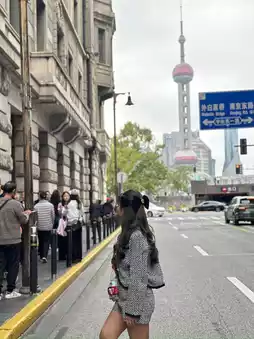 ✔️The Oriental Pearl Tower taken from Nanjing East Road is also very pretty. If you take a photo with the Nanjing East Road building in between, it becomes another photo spot🎀💫