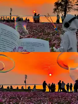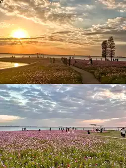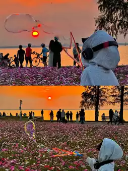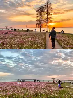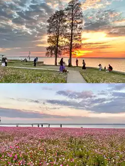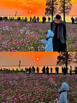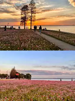 3️⃣Explore the Lakeside Avenue: Drive along the Lakeside Avenue of the Half Marathon Lawn for about five minutes, and a sea of flowers will appear on your right. Walk along the path through the sea of flowers until you reach the lakeside, and let your heart resonate with the beautiful scenery.