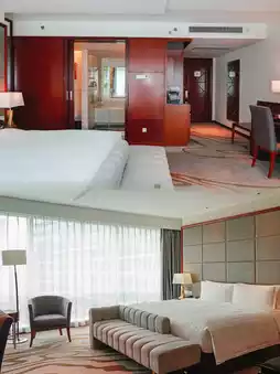 Shanghai Pullman Hotel is located in the bustling center of Shanghai, with a garden full of French romance. As soon as you enter the hotel lobby, the spacious space, exquisite decoration, and warm lighting make you feel relaxed and comfortable. On both sides of the lobby are various well-equipped rooms, providing a quiet and comfortable accommodation environment for both business and leisure travelers.